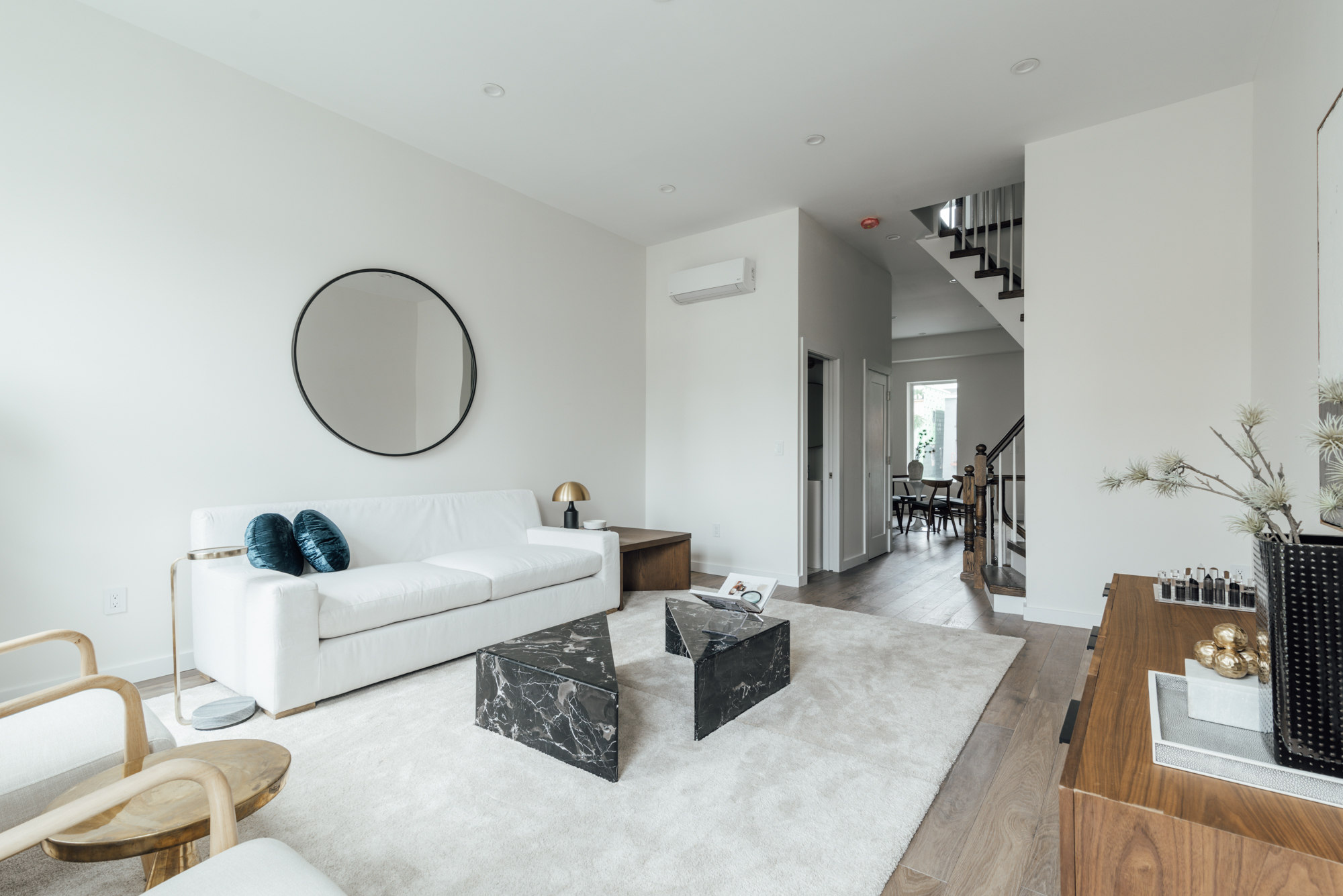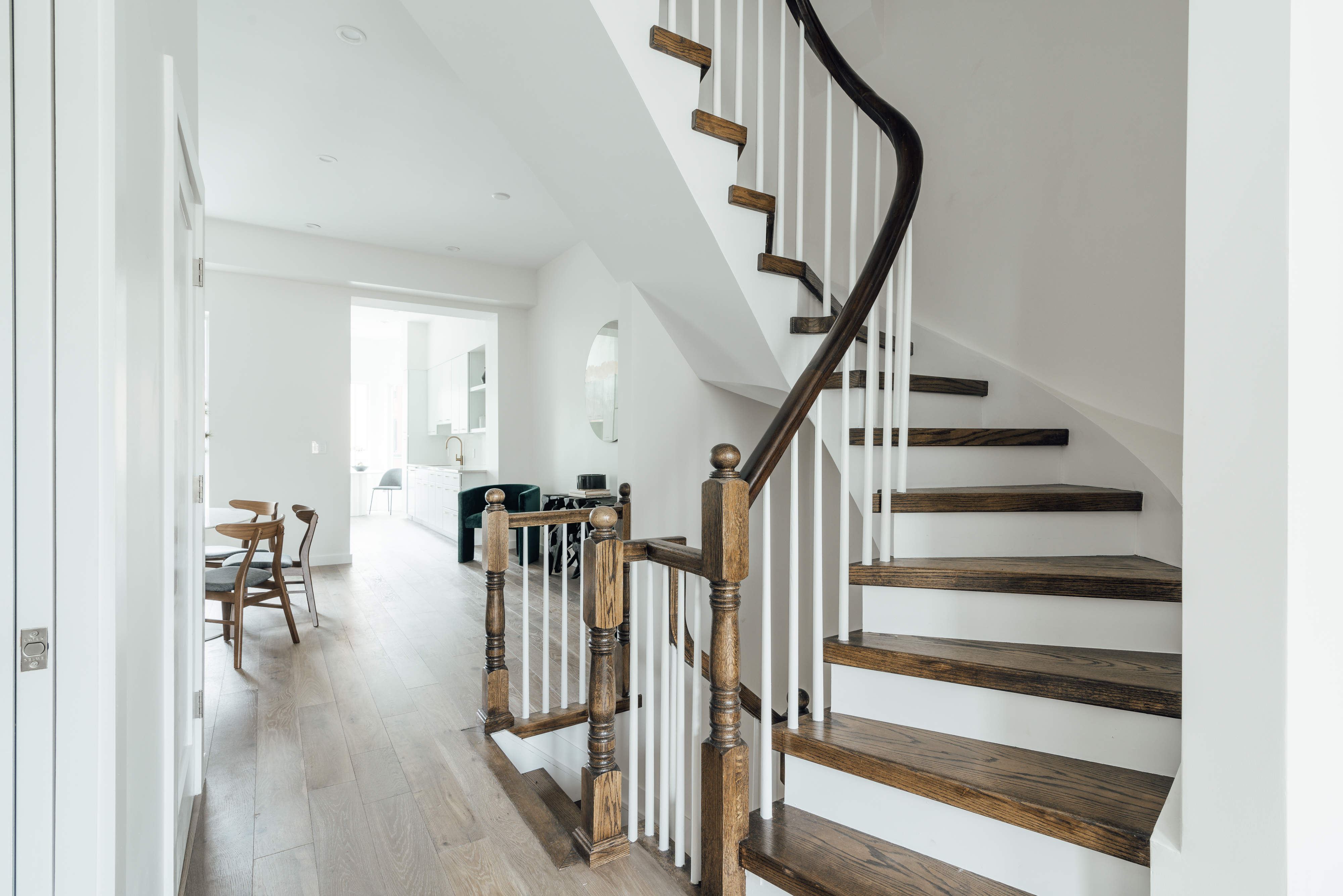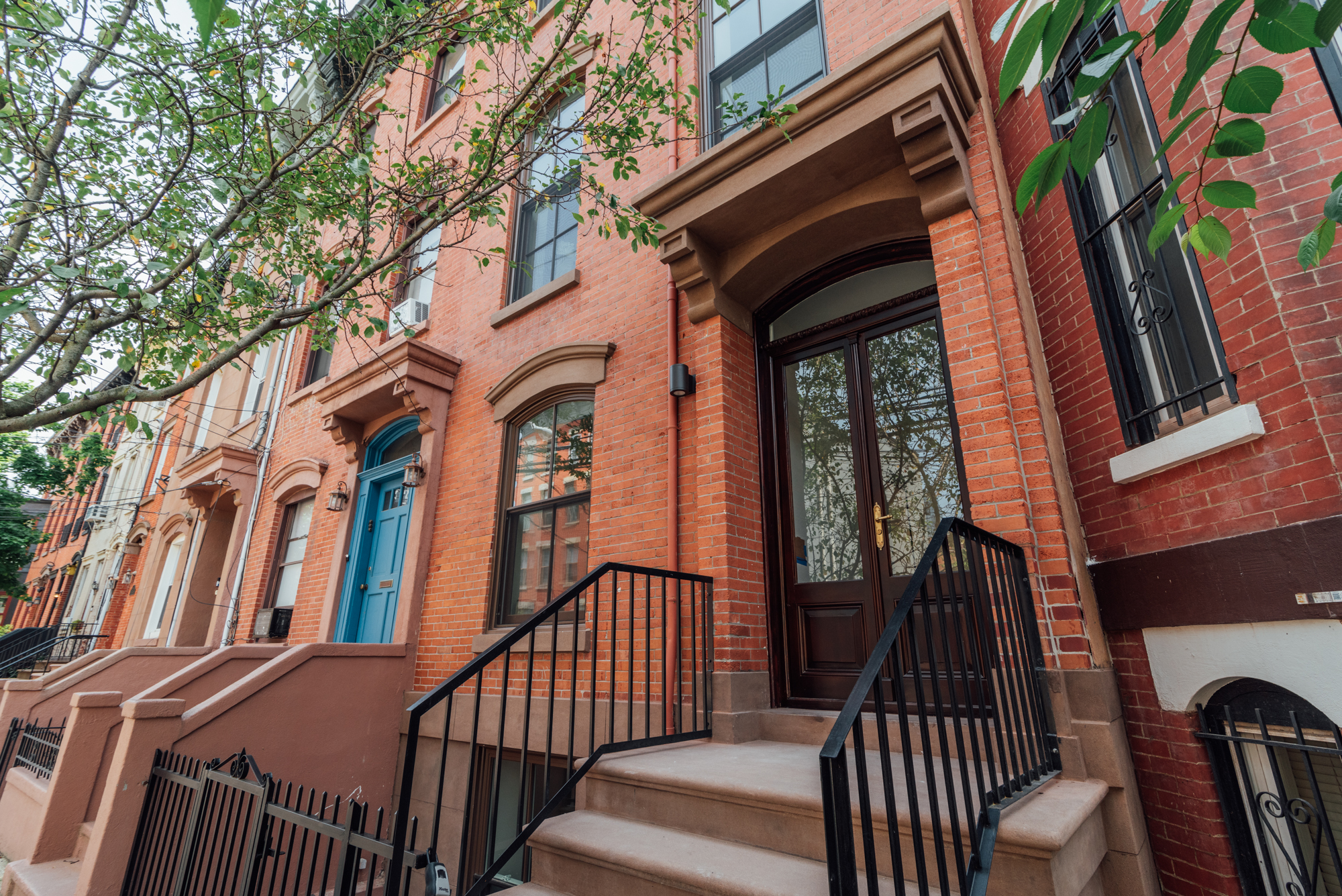 A full-scale redevelopment of a historic brownstone in the Van Vorst Park district, transforming the property through complete interior reconstruction and condominium conversion. The project combines restored architectural elements with contemporary residential design and includes a landscaped backyard, rooftop terrace with Manhattan skyline views, and carefully integrated flood mitigation strategies.