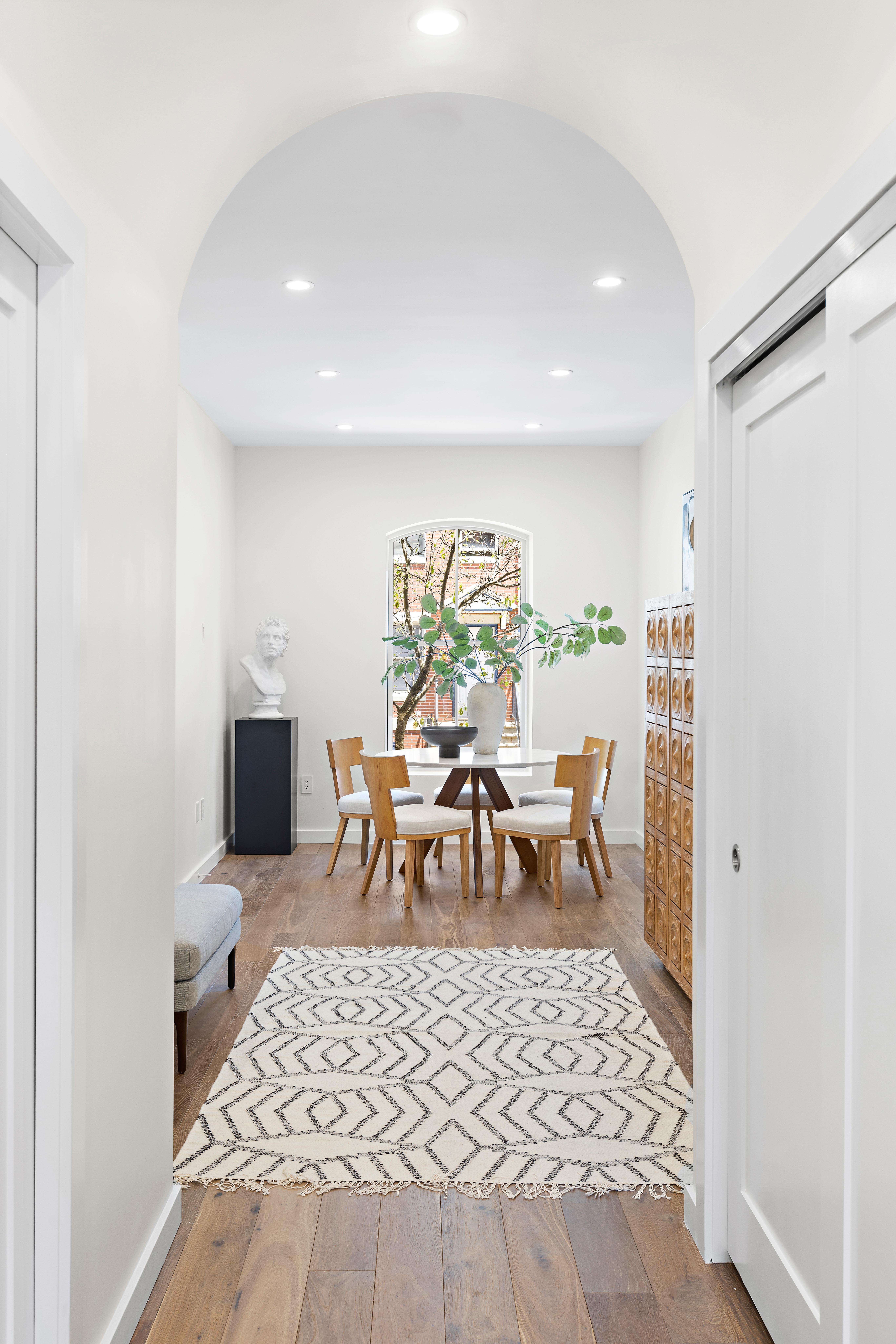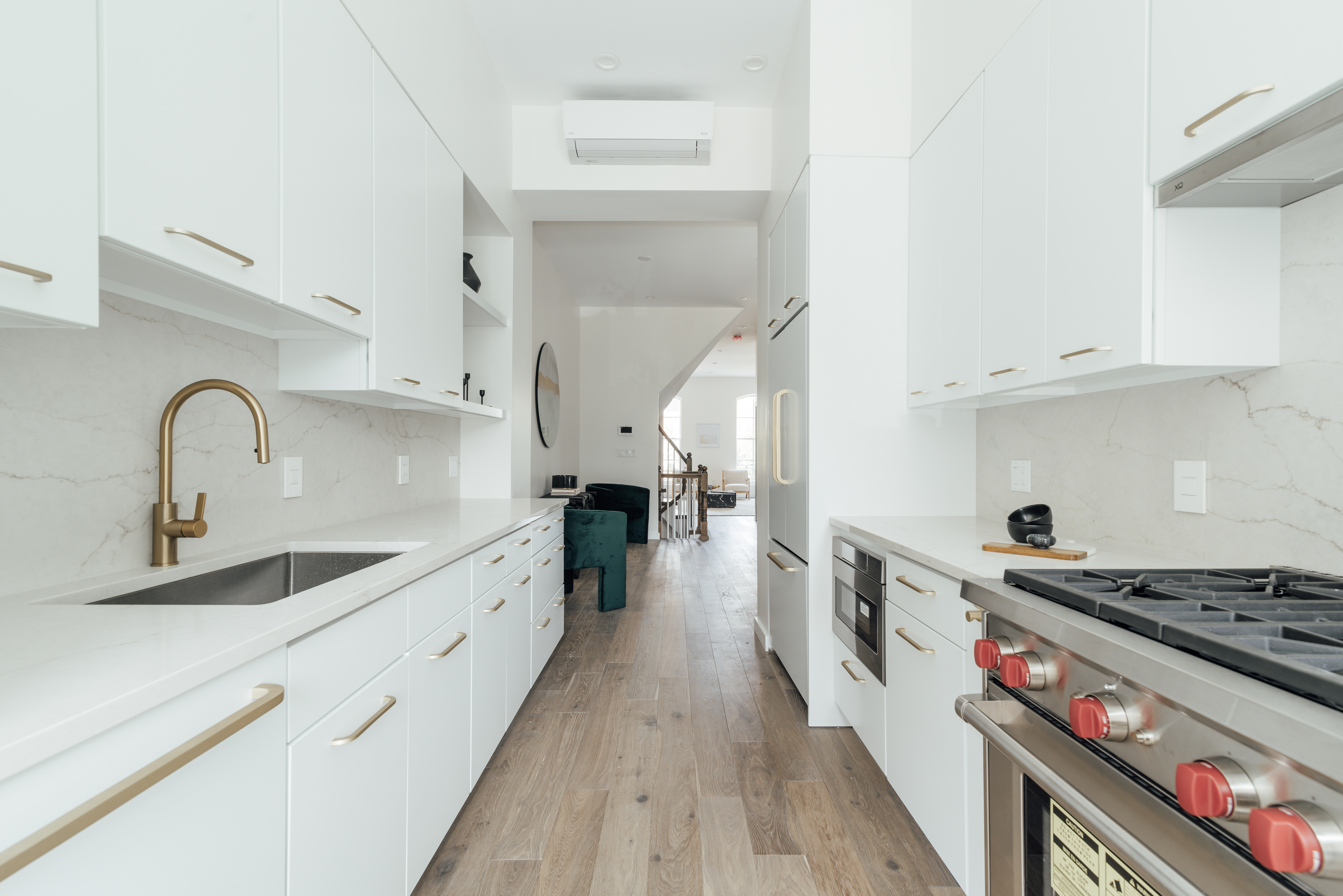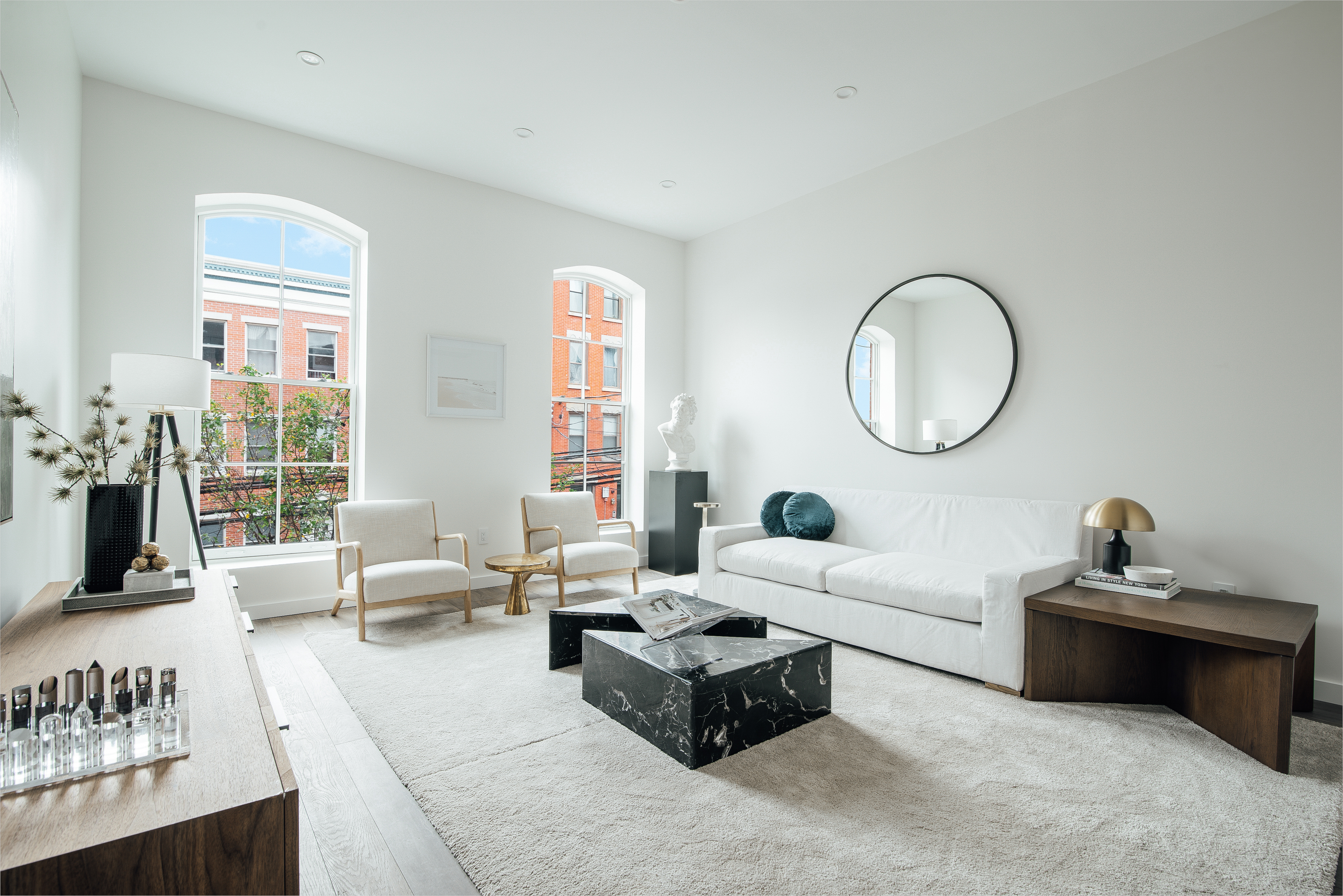 A full-scale redevelopment of a historic brownstone in the Van Vorst Park district, transforming the property through complete interior reconstruction and condominium conversion. The project combines restored architectural elements with contemporary residential design and includes a landscaped backyard, rooftop terrace with Manhattan skyline views, and carefully integrated flood mitigation strategies.