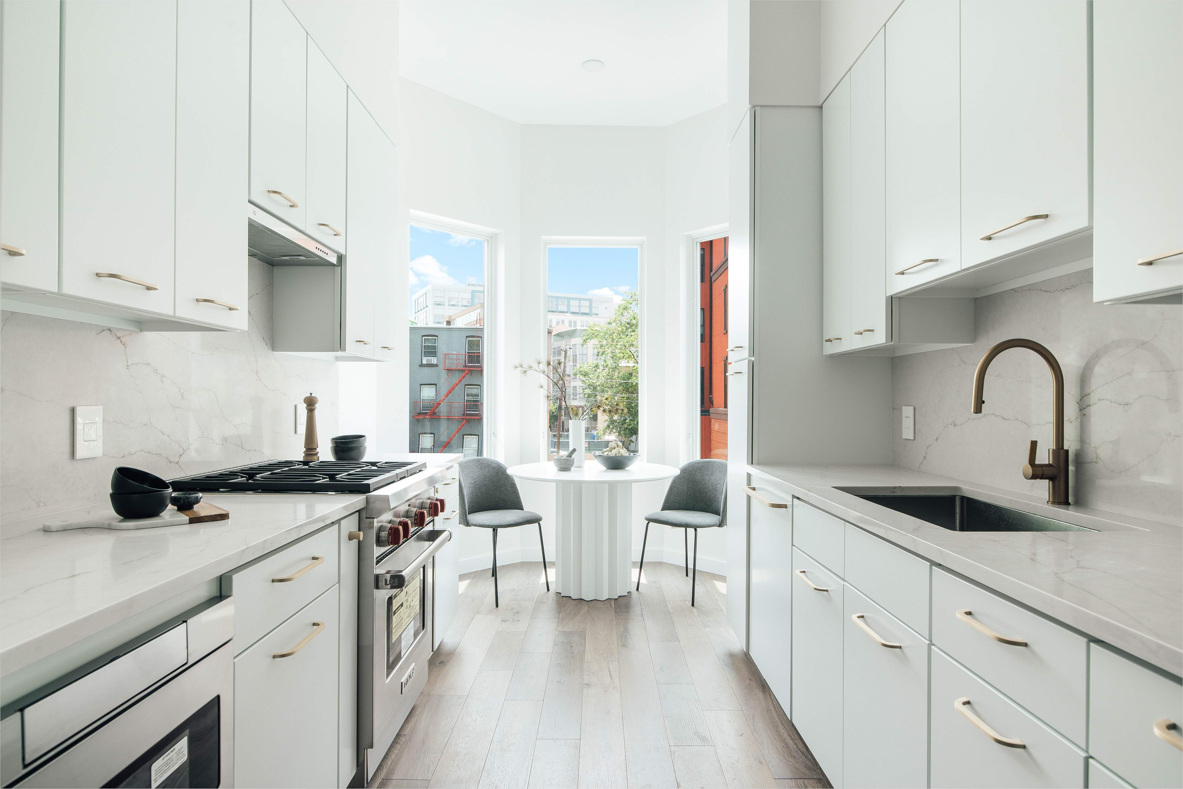 A full-scale redevelopment of a historic brownstone in the Van Vorst Park district, transforming the property through complete interior reconstruction and condominium conversion. The project combines restored architectural elements with contemporary residential design and includes a landscaped backyard, rooftop terrace with Manhattan skyline views, and carefully integrated flood mitigation strategies.